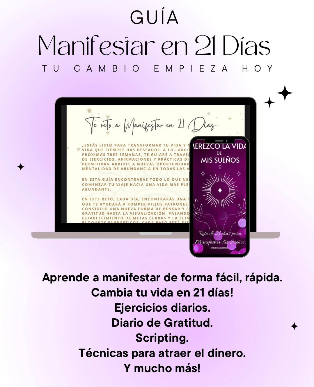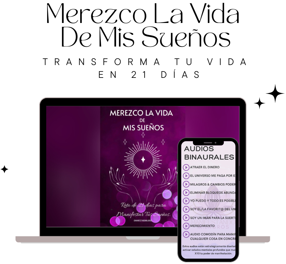 La guía completa INCLUYE 9 AUDIOS BINAURALES 🎧 para que manifiestes en menos de 21 días. Cada frecuencia actúa directamente sobre tu subconsciente, rompiendo bloqueos y alineando tu vibración con lo que deseas.